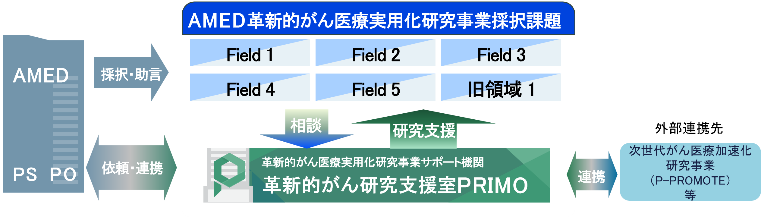 革新的がん研究支援室(Practical Research for Innovative Cancer Control Management Office、PRIMO) は、AMED革新的がん医療実用化研究事業(https://www.amed.go.jp/program/list/15/01/010.html)に設置されているサポート機関です。
